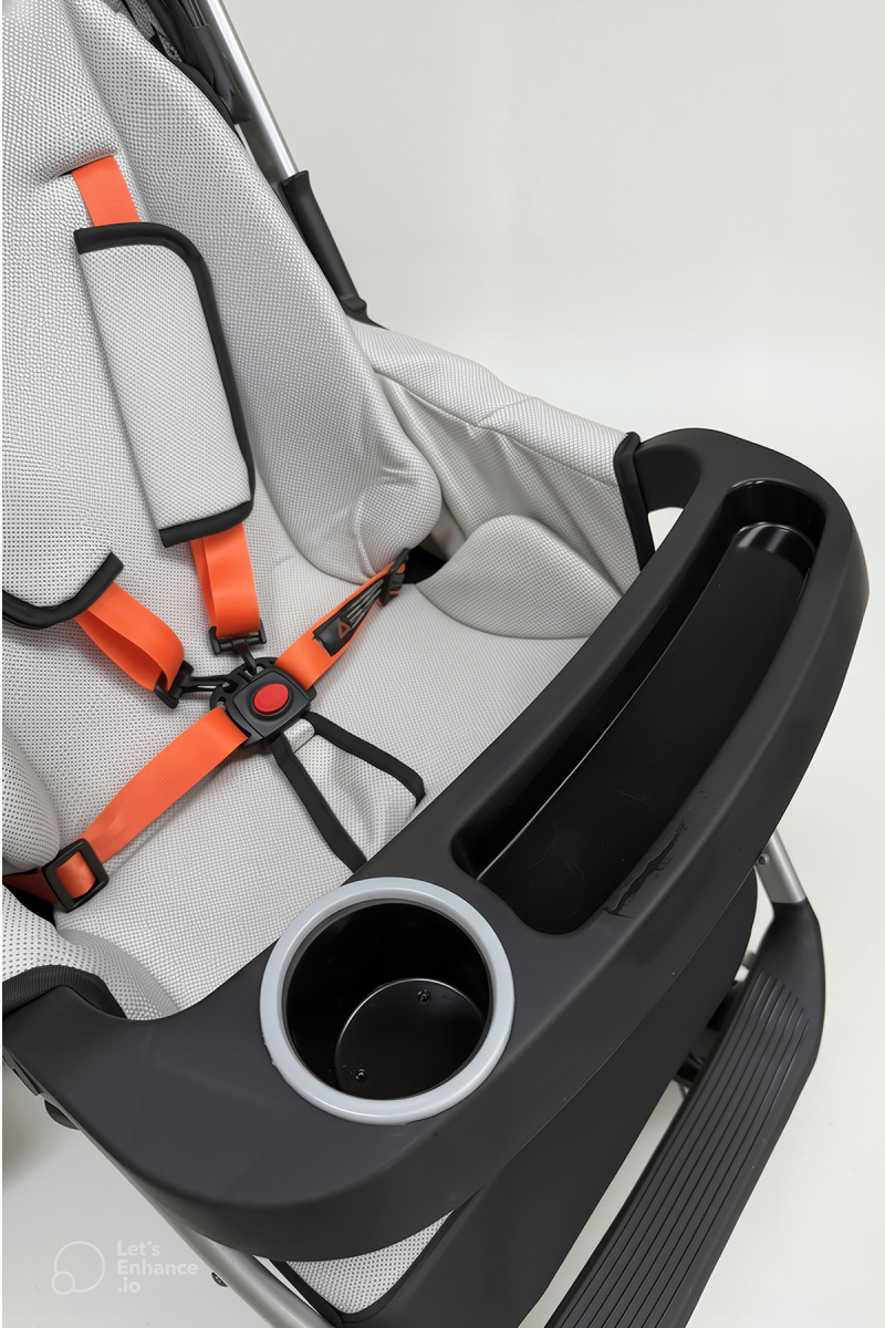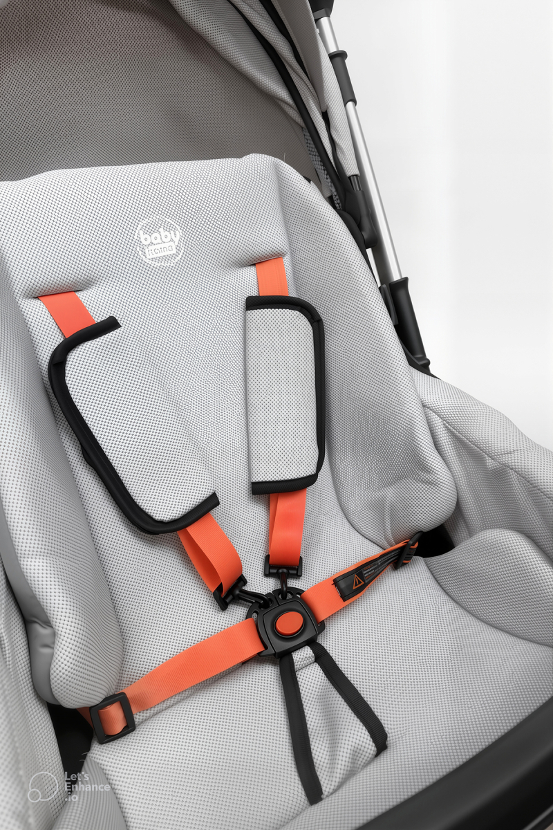 Ayarlanabilir 5 noktalı kemer sistemi bebeğin gövde ve bacaklarından güvenli şekilde sabitlenmesini sağlar.
