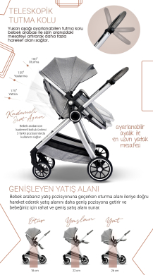 - Oto koltuğu, bebek arabasına monte edilerek travel sistem olarak kullanılabilir.
